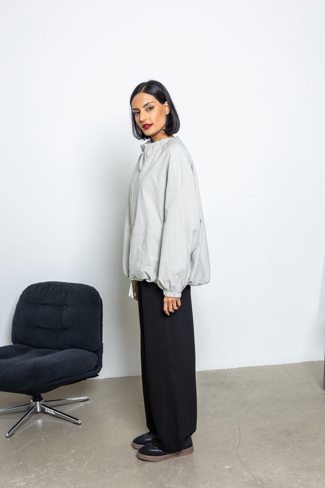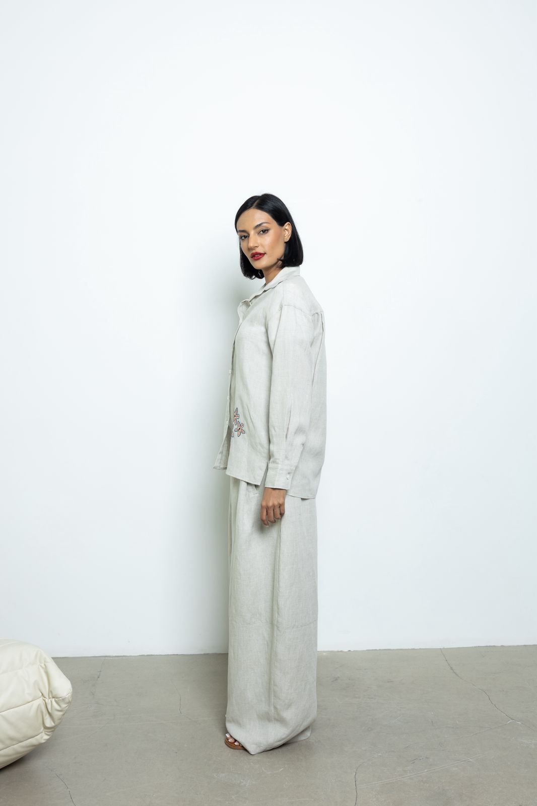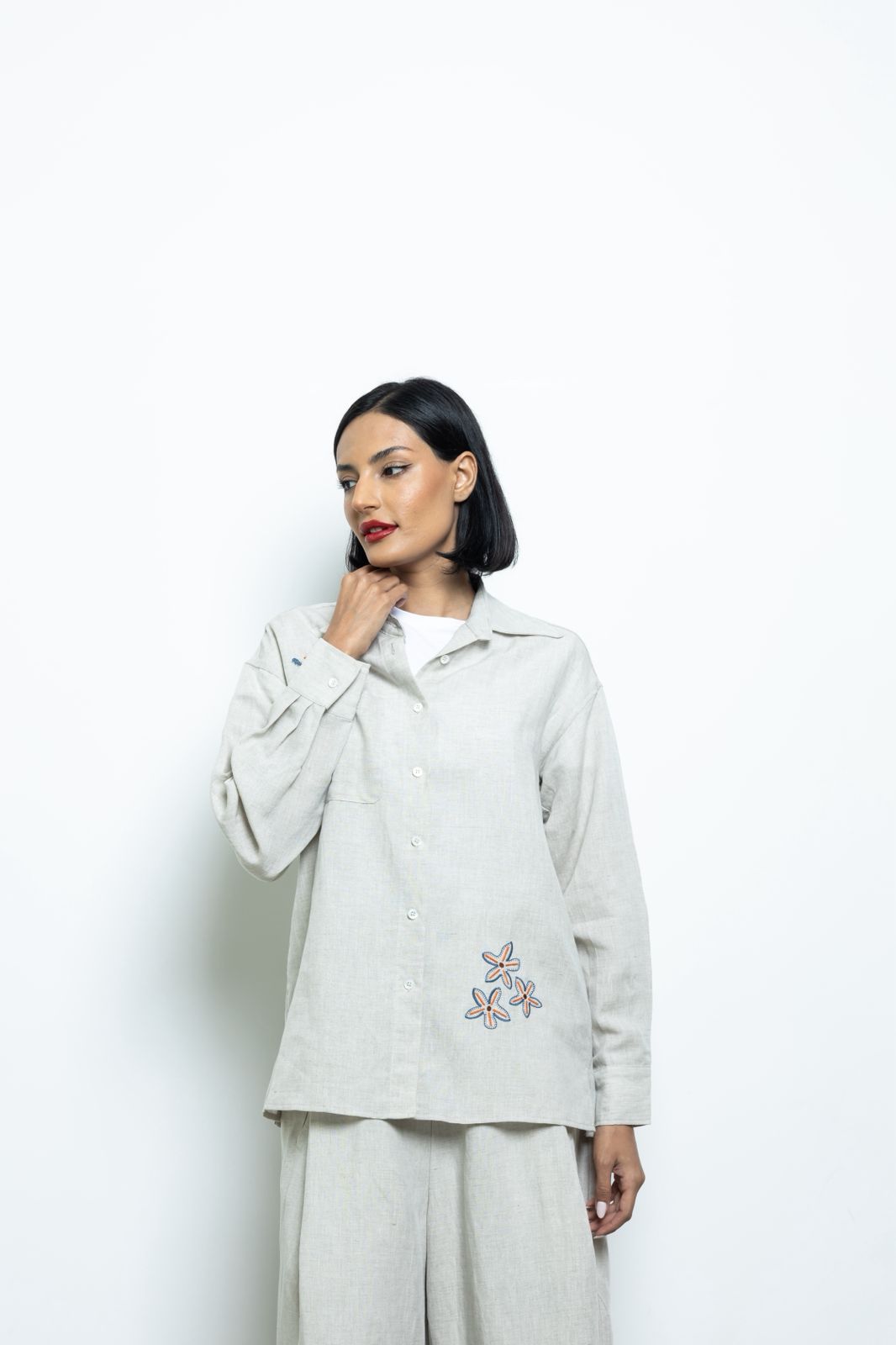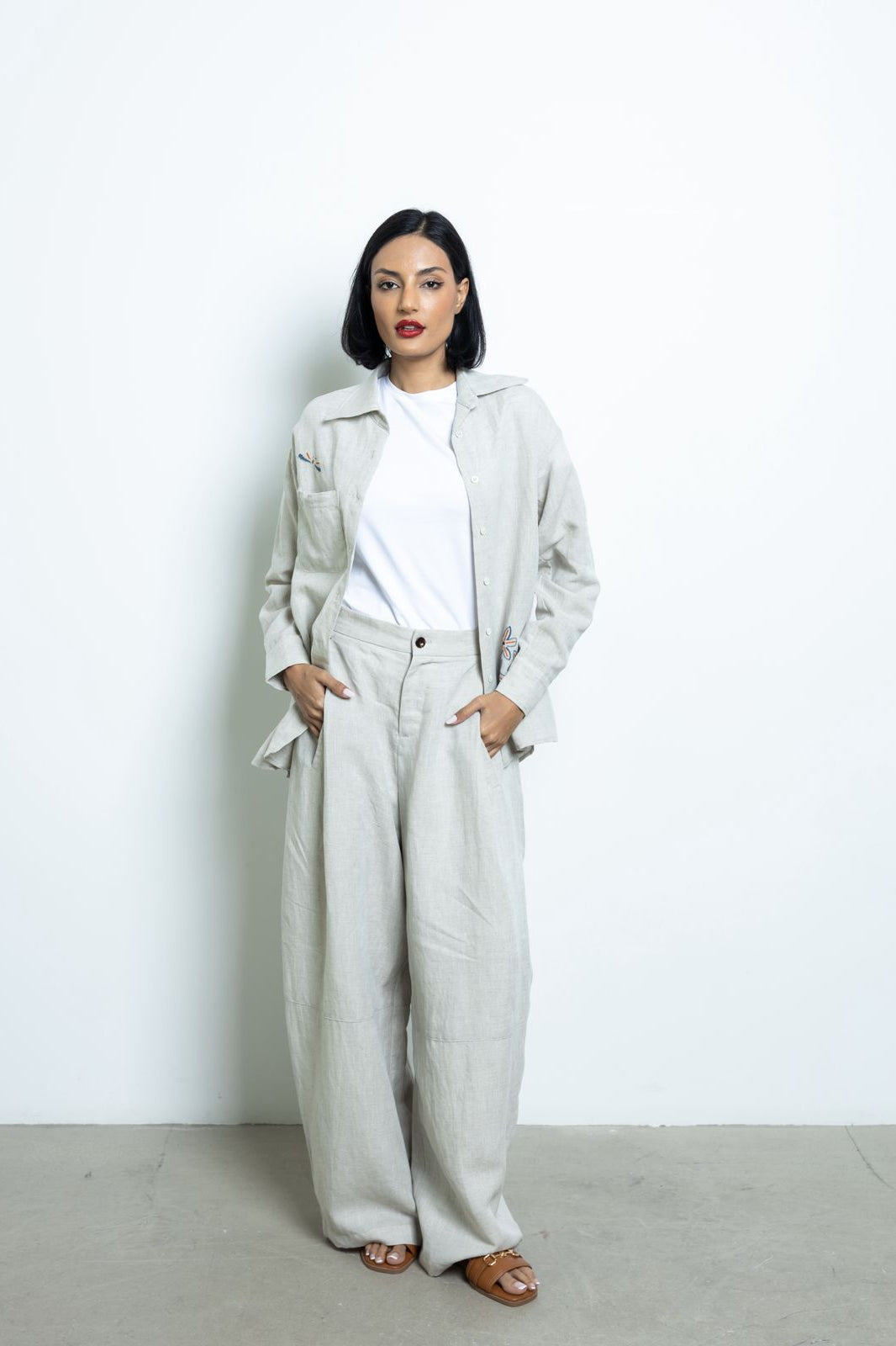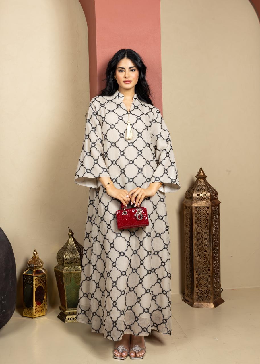Mahra Abaya With Scarf - Gray Flower Embroidery