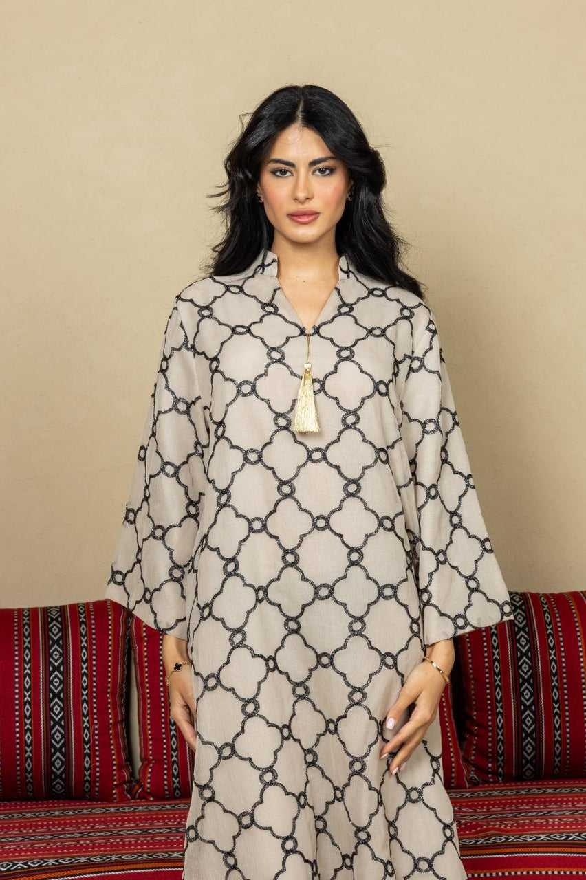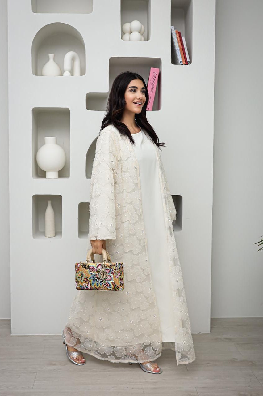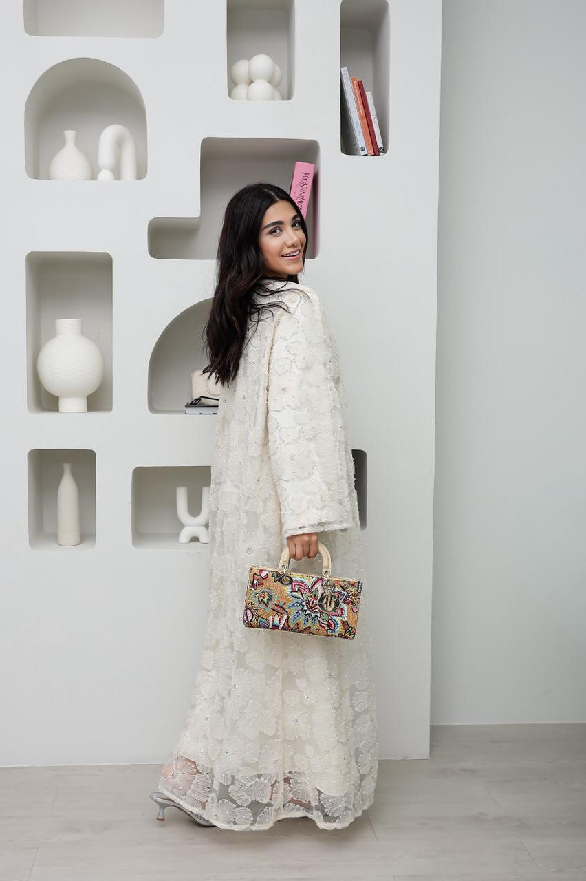Mahra Abaya With Scarf - Beige Flower Embroidery