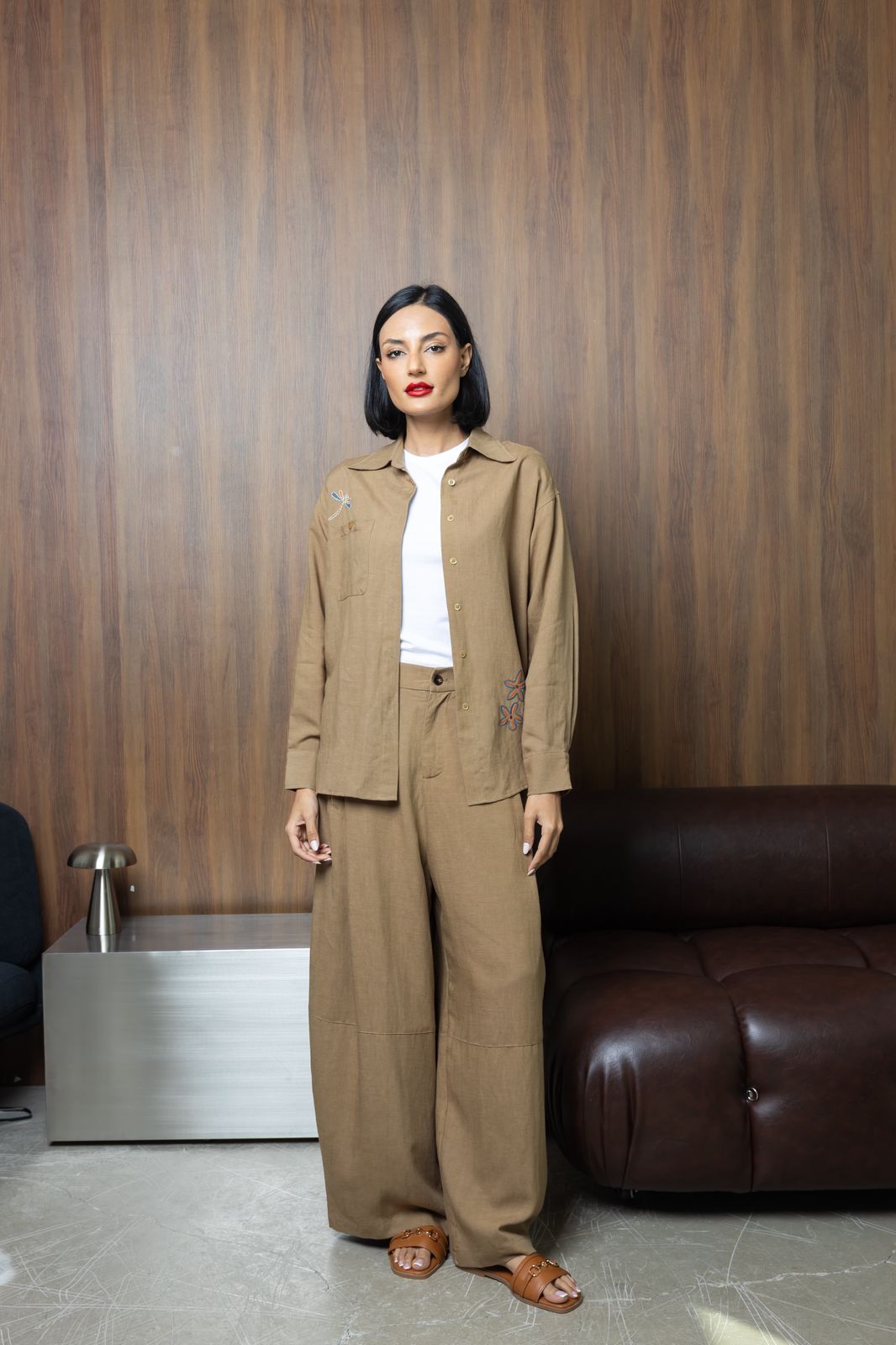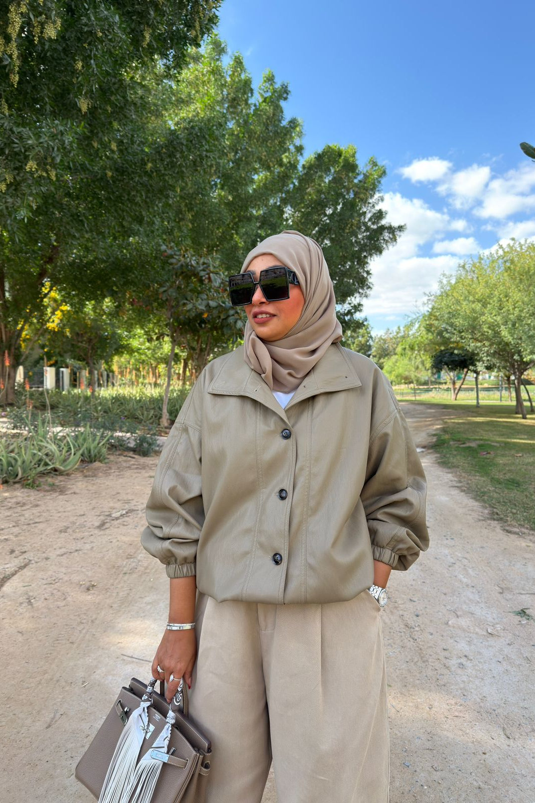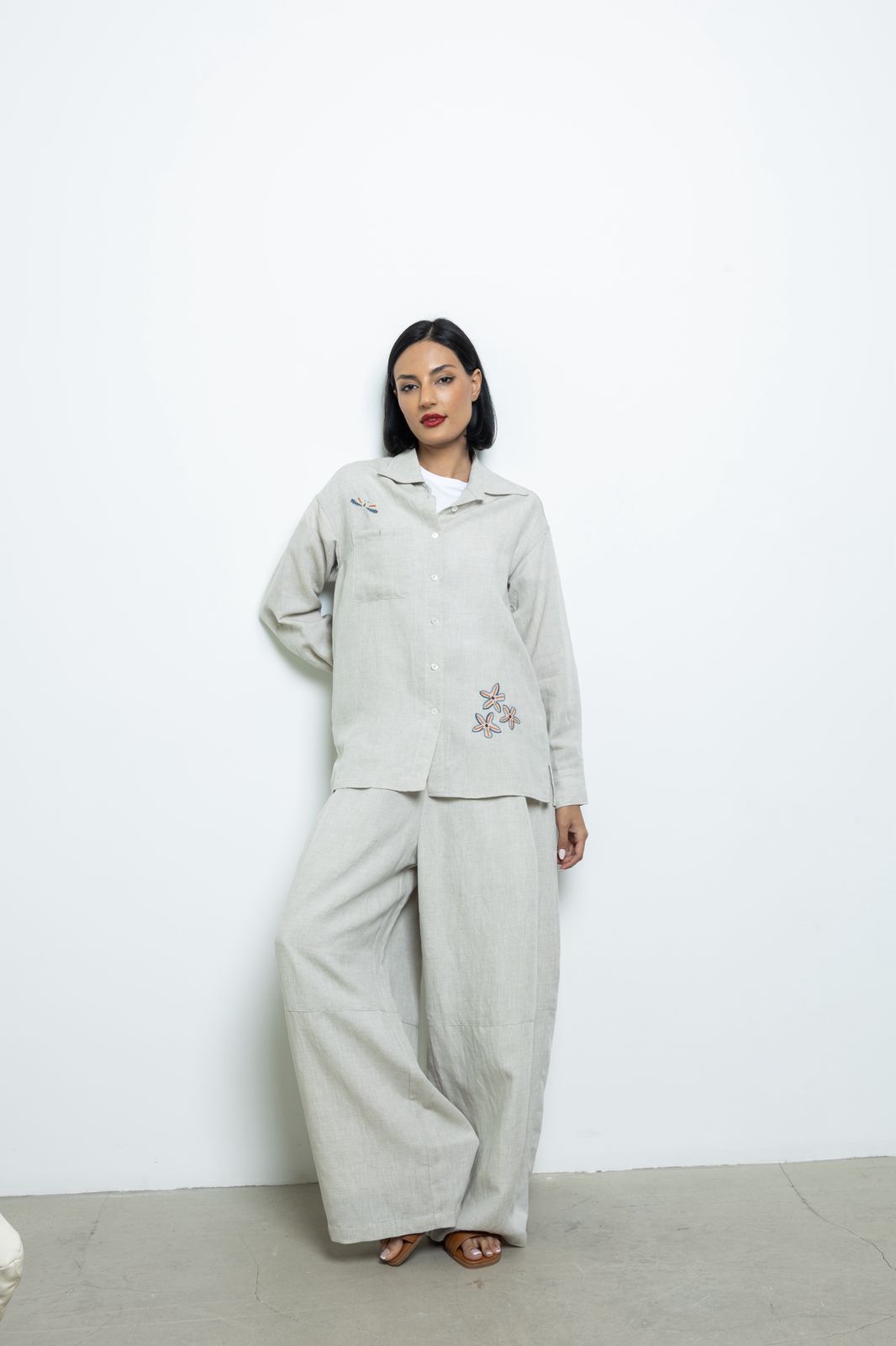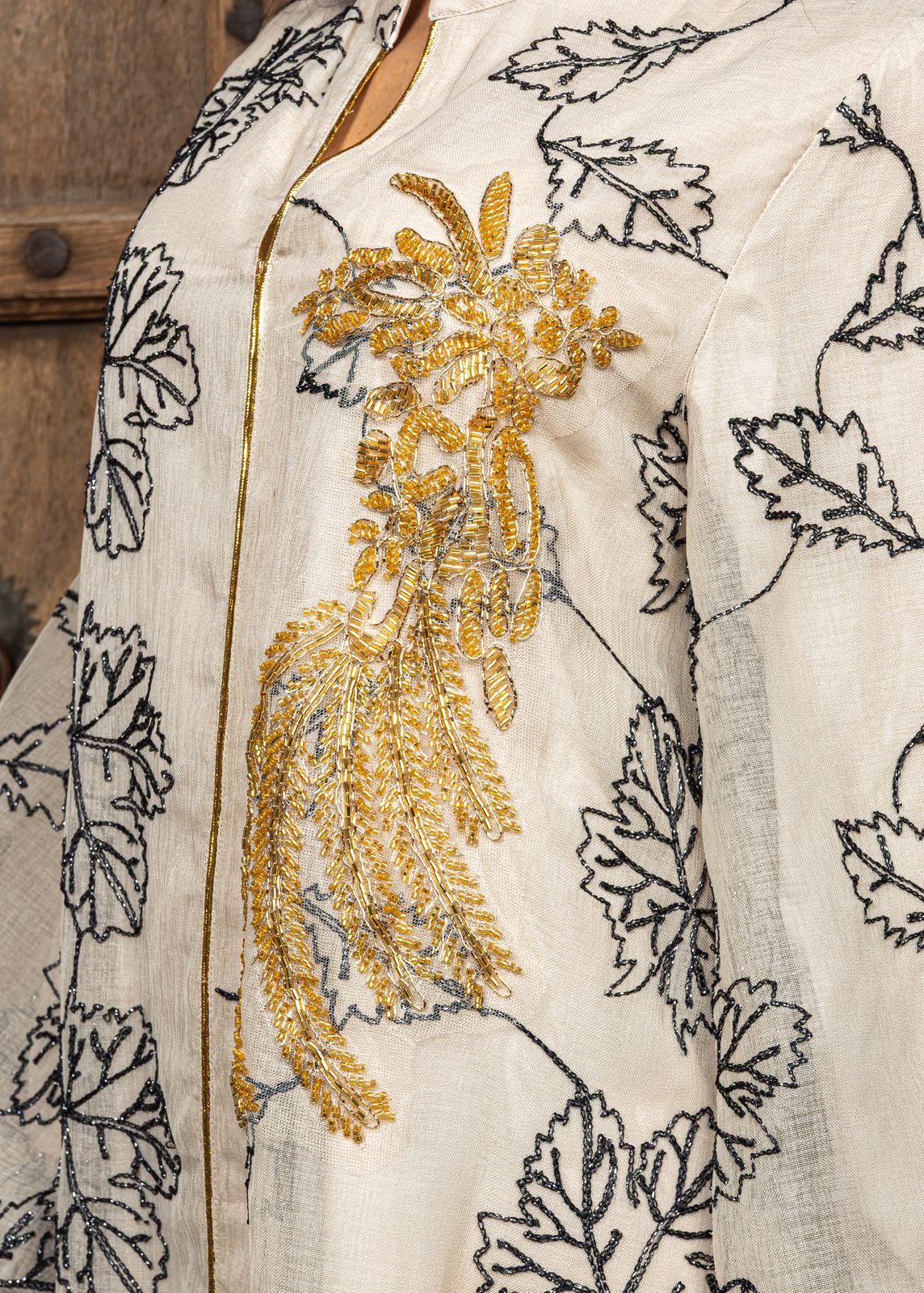 Mahra Abaya With Scarf - Beige Flower Embroidery