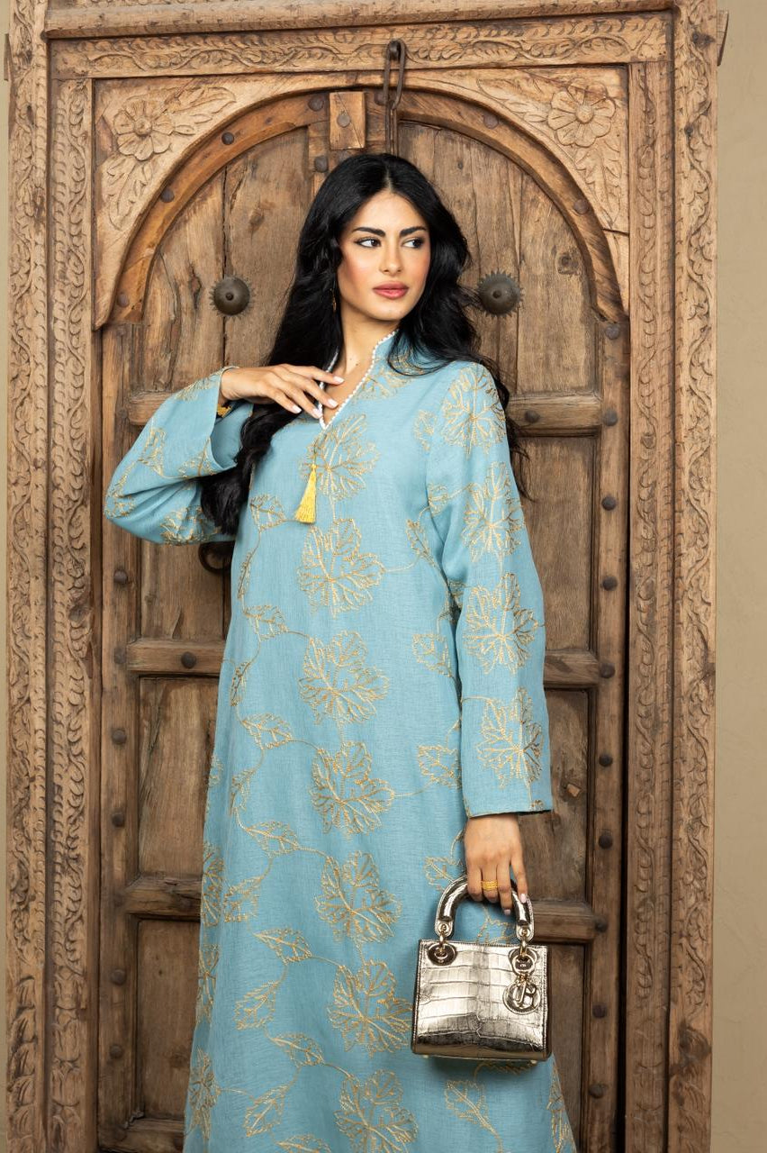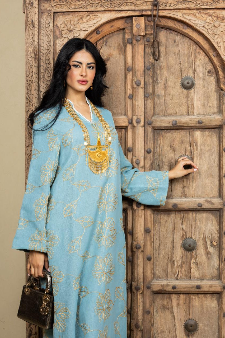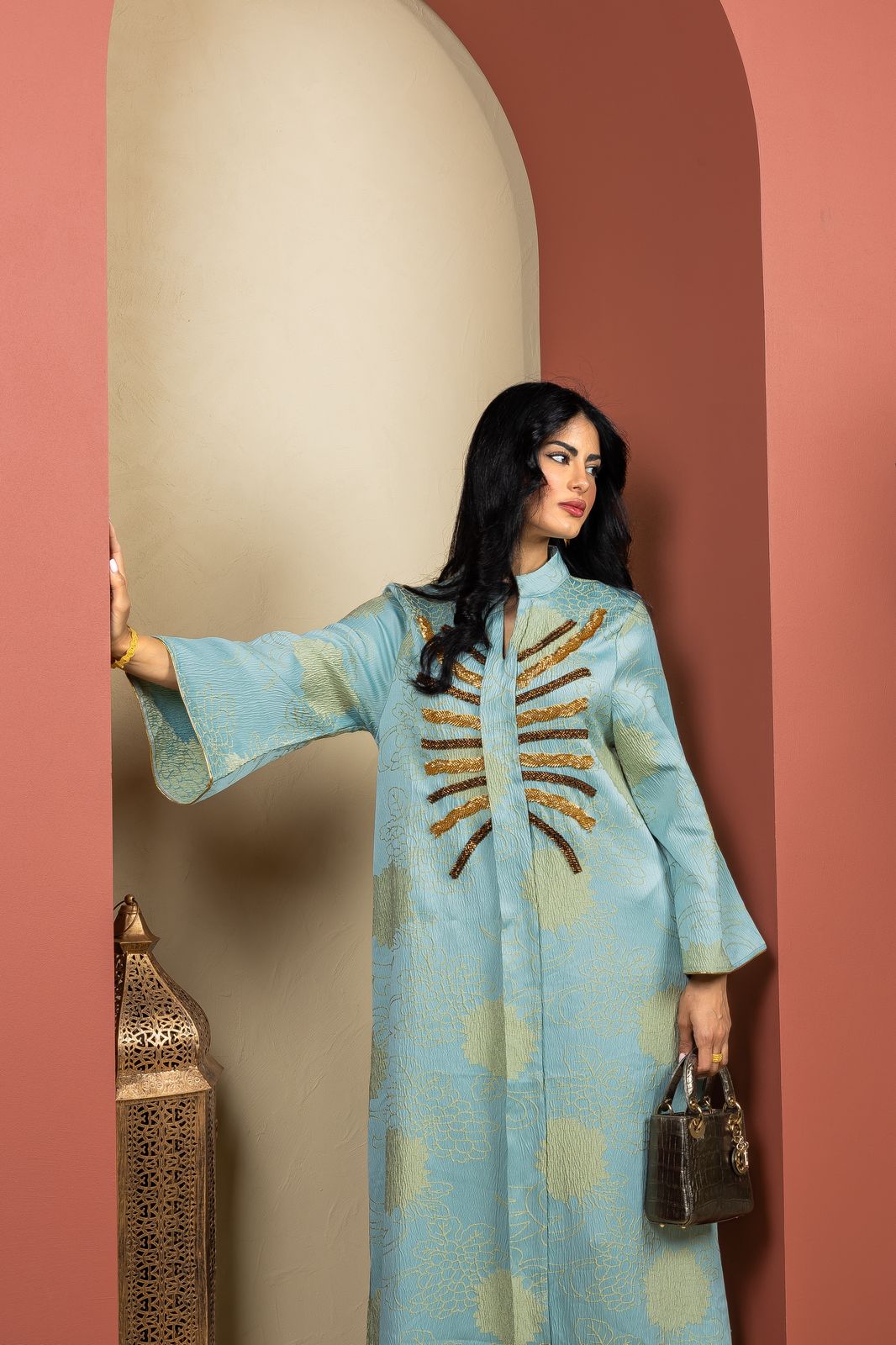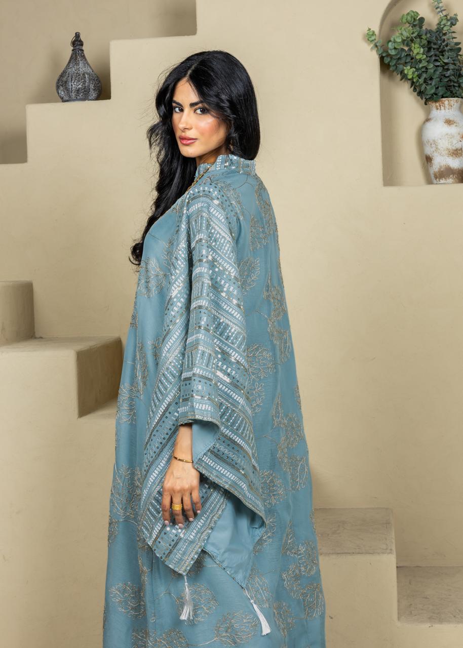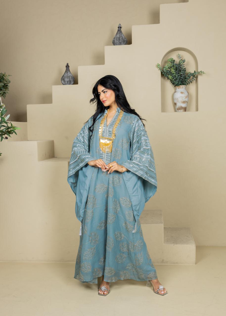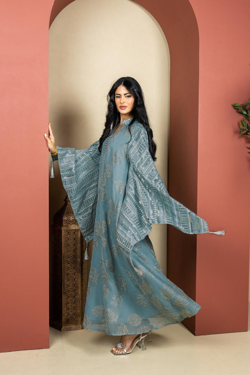 Mahra Abaya With Scarf - Blue Flower Embroidery