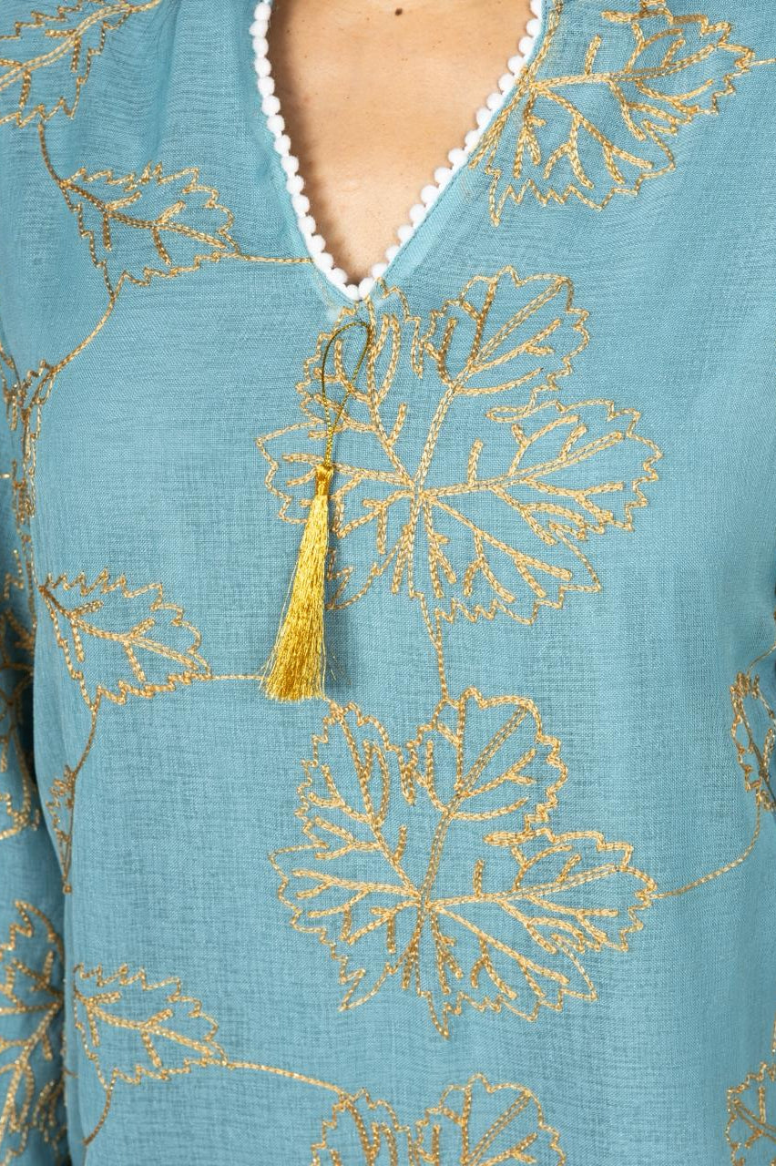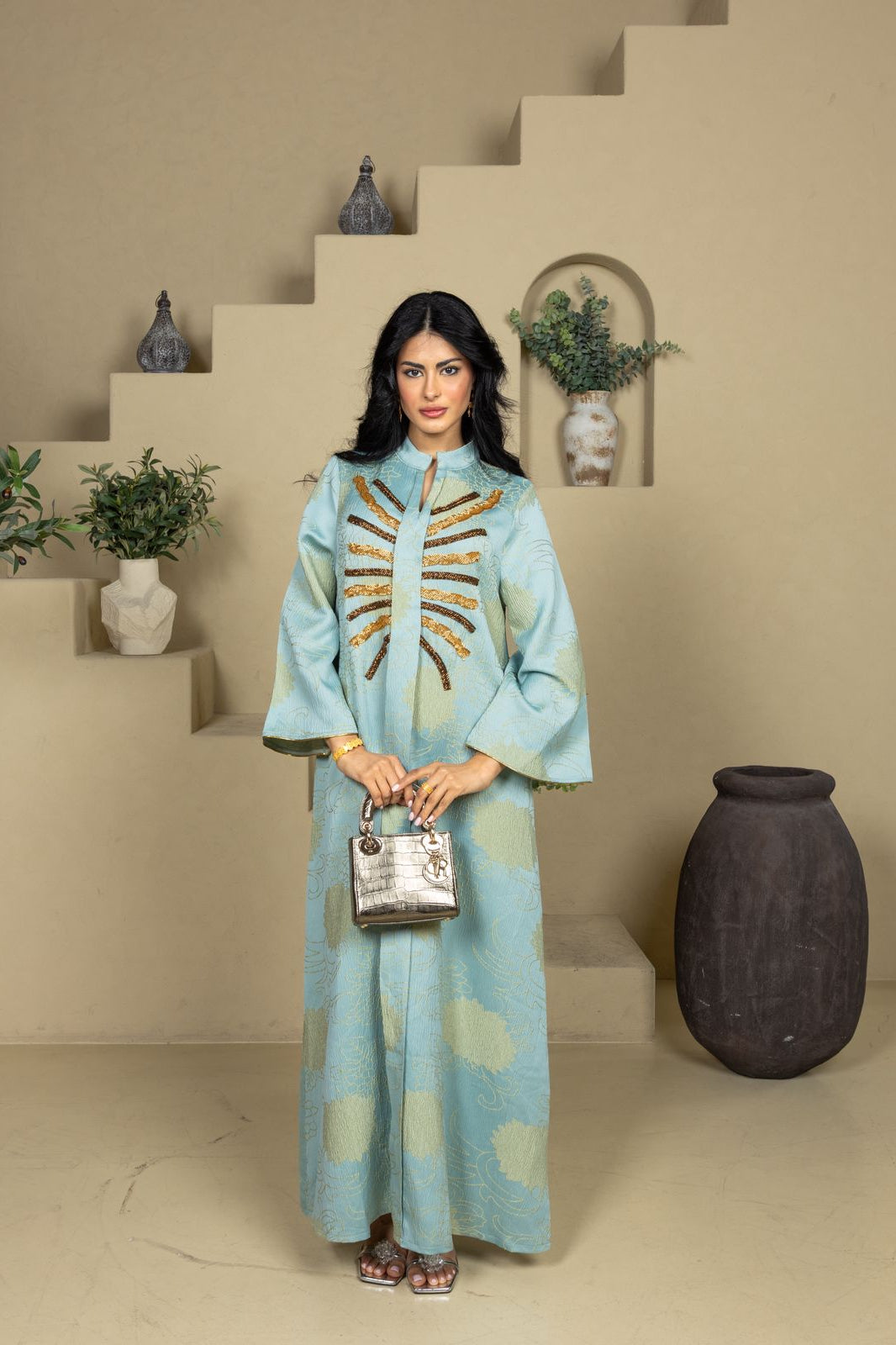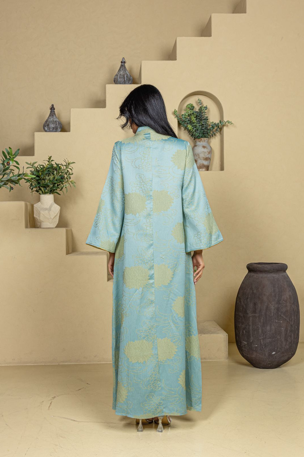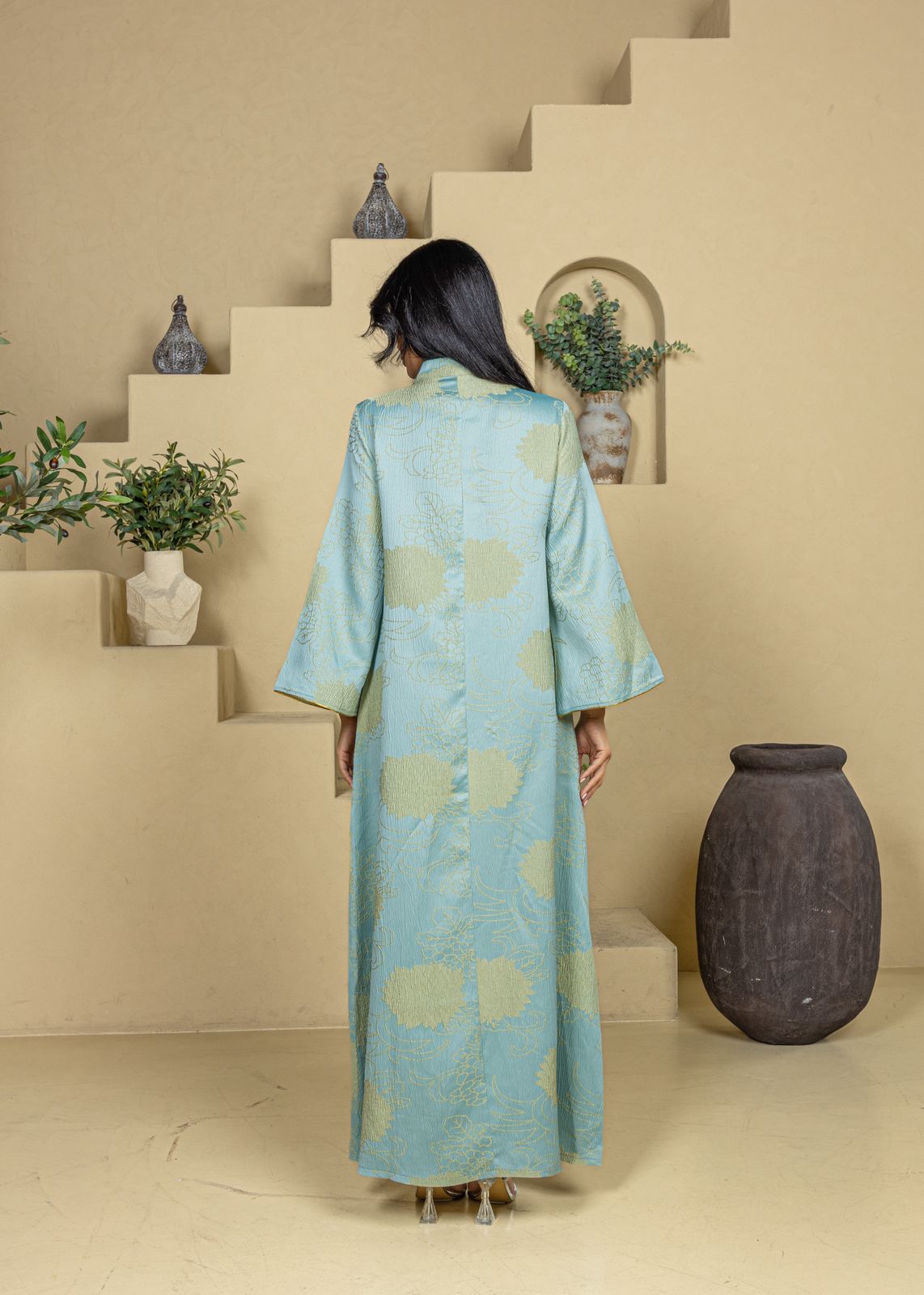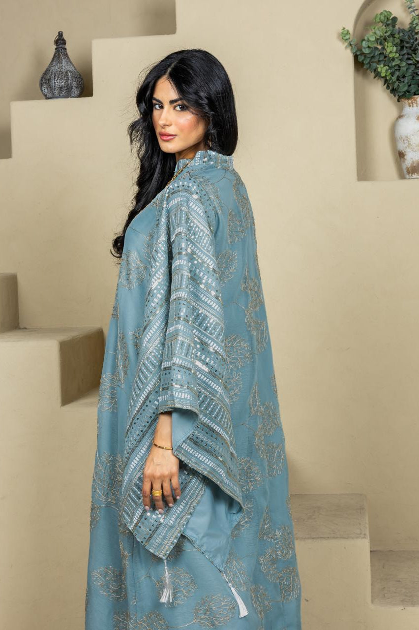 Mahra Abaya With Scarf - Blue Flower Embroidery
