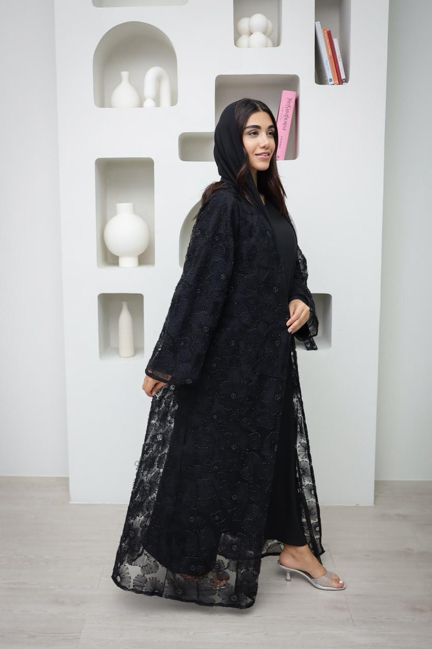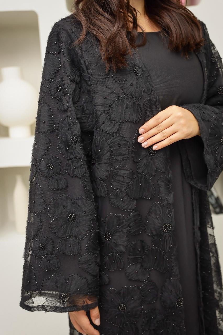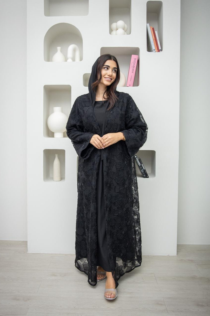 Mahra Abaya With Scarf - Black Flower Embroidery