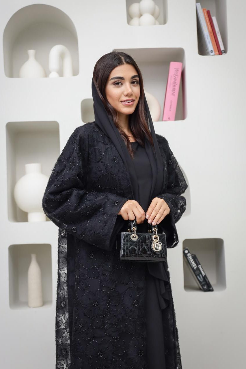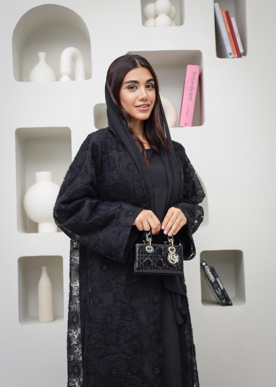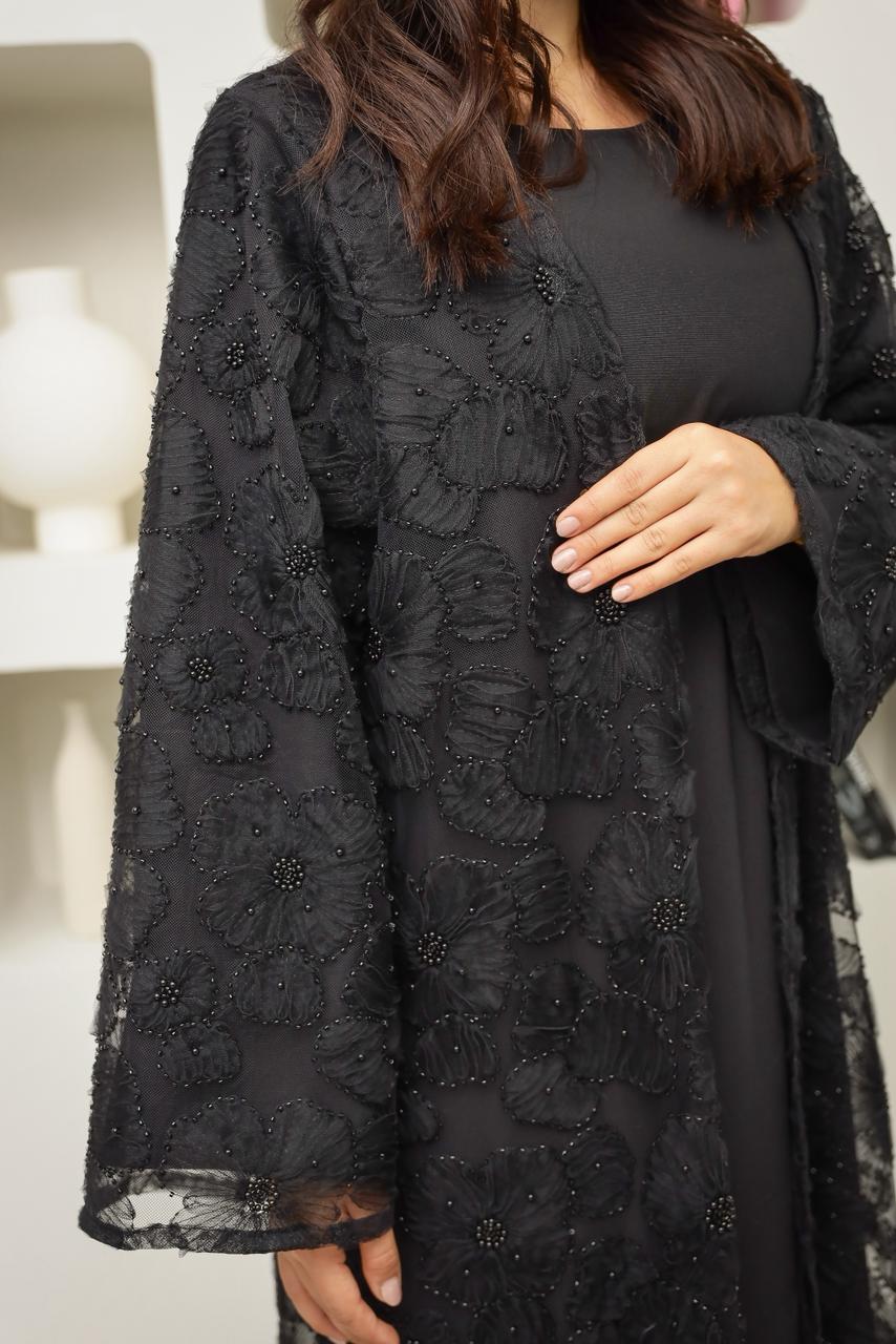 Mahra Abaya With Scarf - Black Flower Embroidery