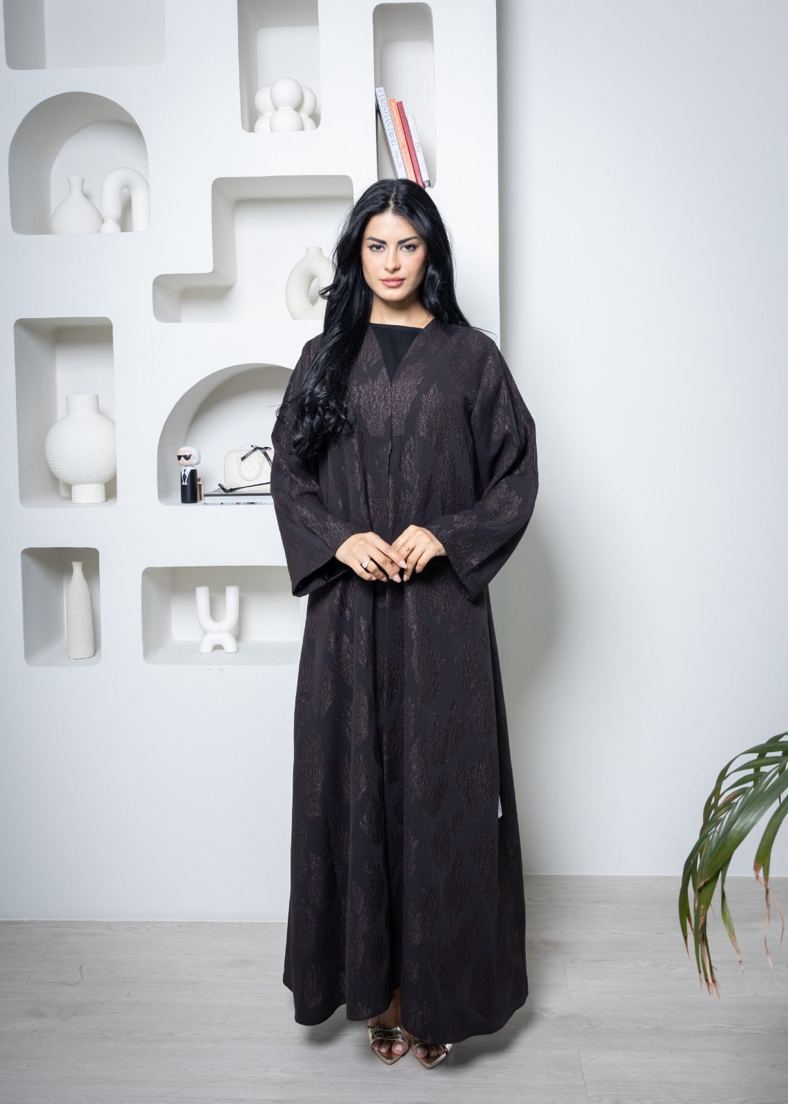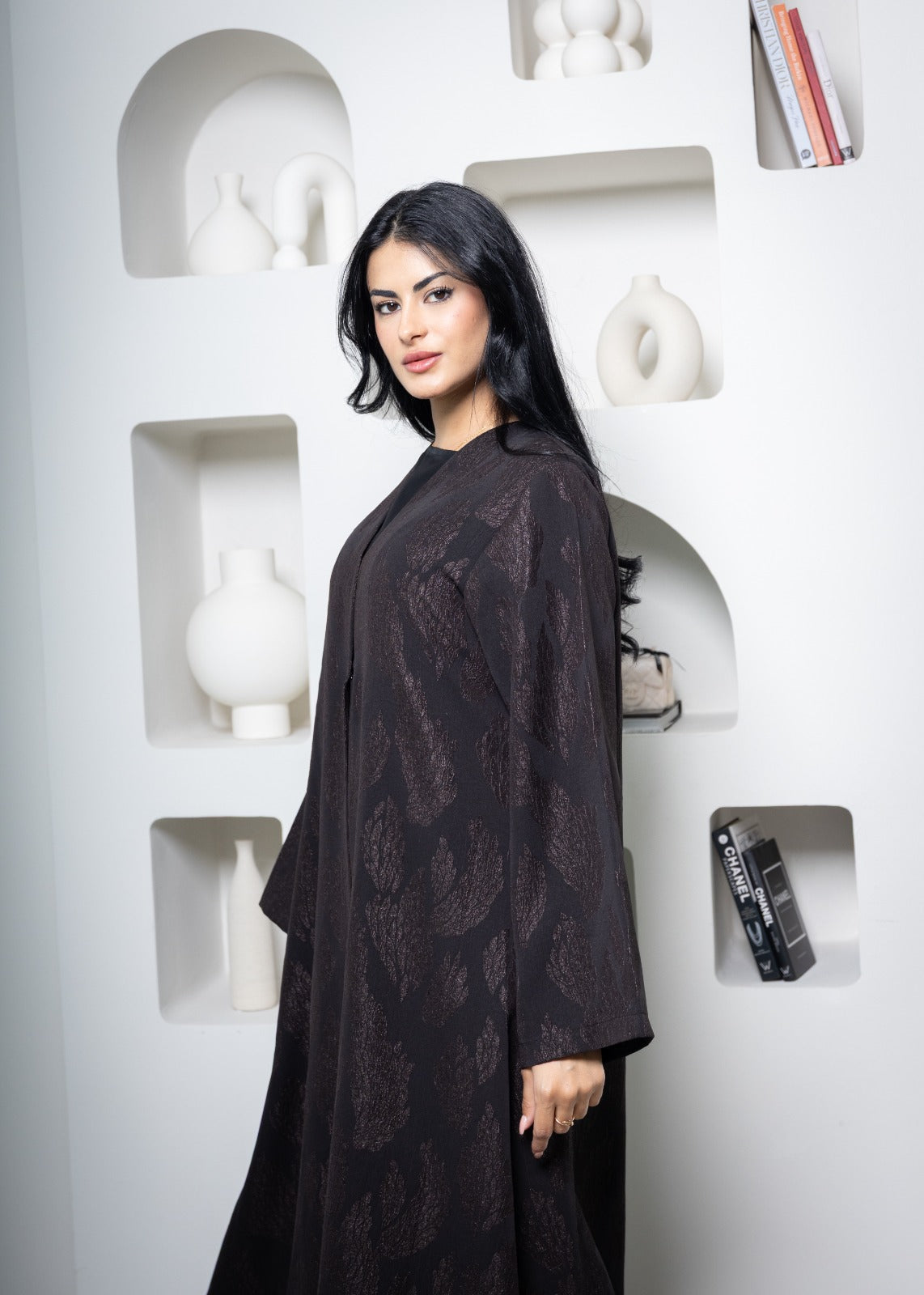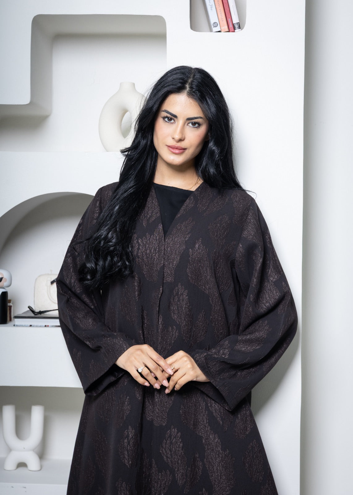 عباية ندى مع وشاح - أسود