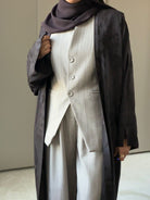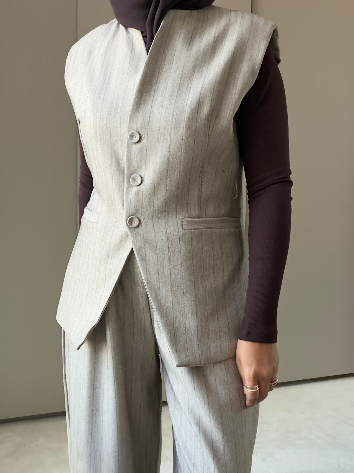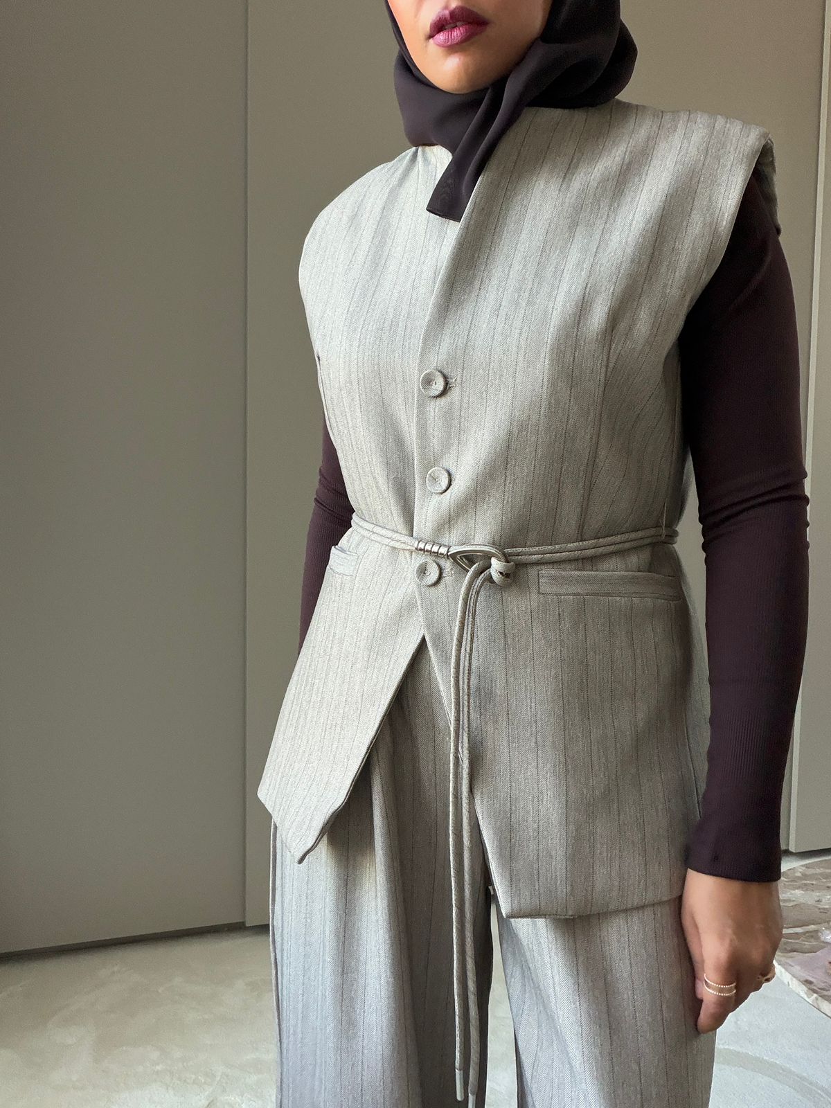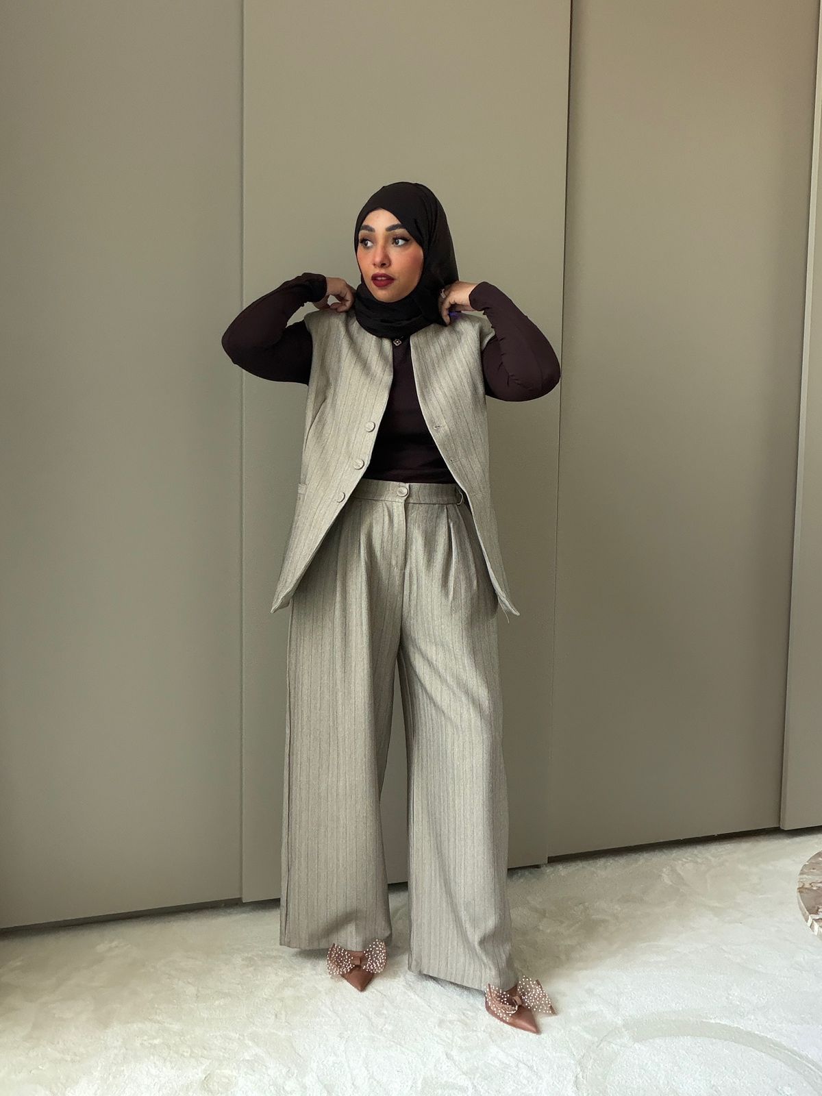 Refined tailoring meets effortless modest elegance with this Bond two-piece set. Designed for the modern woman, this coordinated waistcoat and wide-leg pants ensemble offers a powerful yet graceful silhouette suitable for workdays, meetings, and elevated everyday wear.
