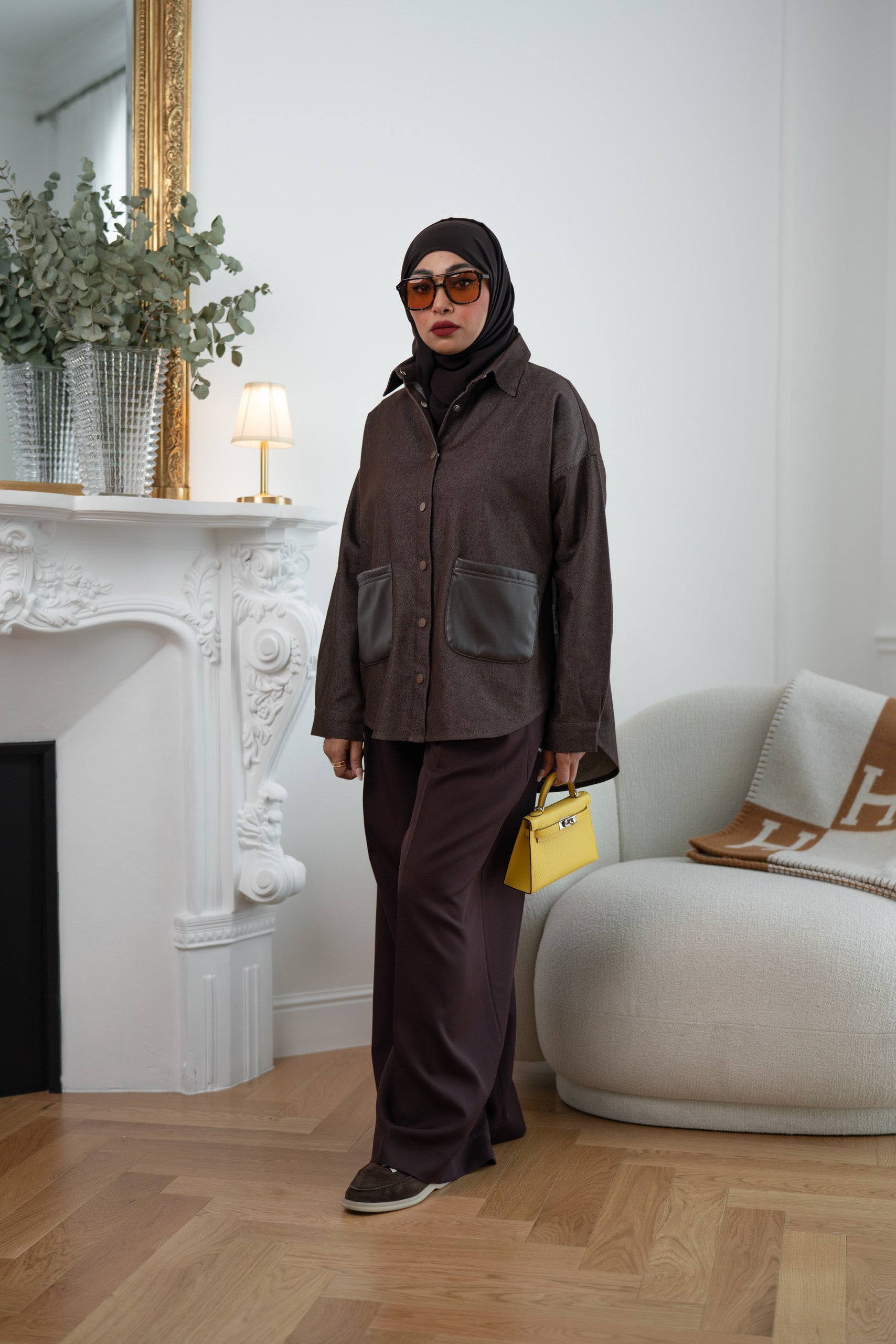 Stay stylish and modest with this Choco Brown Denim Shirt Jacket. Designed with a relaxed fit, clip button closure, and two front pockets, it’s the perfect layering piece for everyday wear. The soft denim fabric offers structure and comfort, while the modest cut ensures full coverage with effortless style.