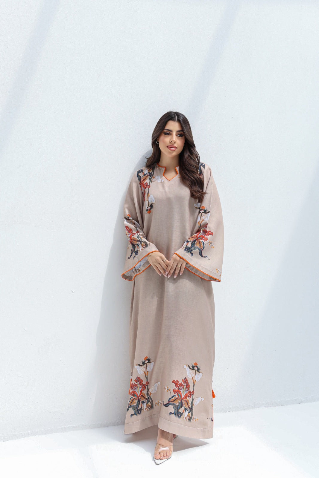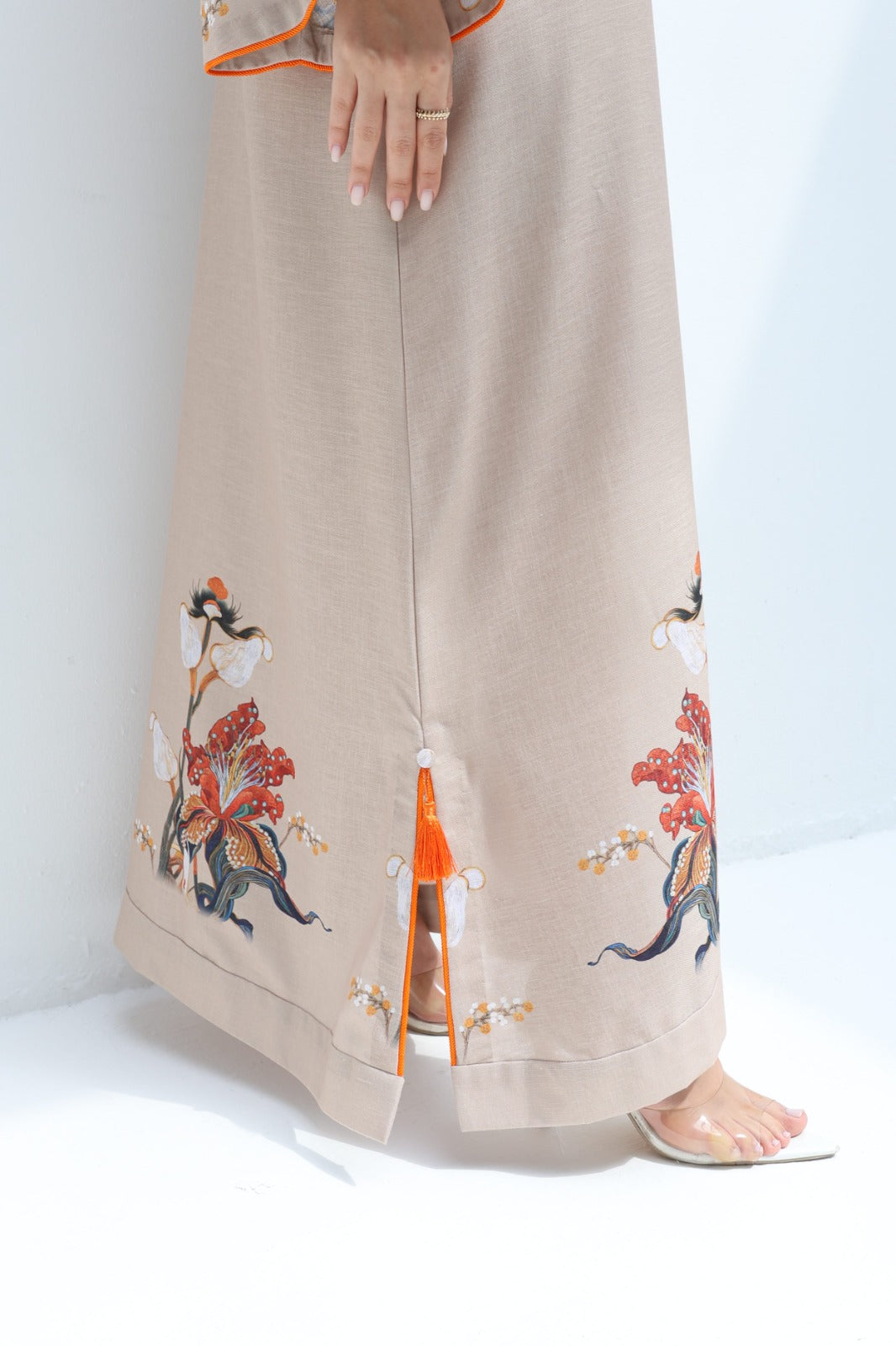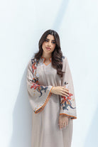 L93 - Beige with Beautiful Flower linen Jalabiya