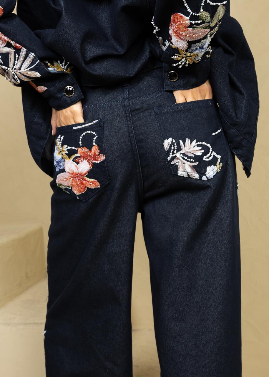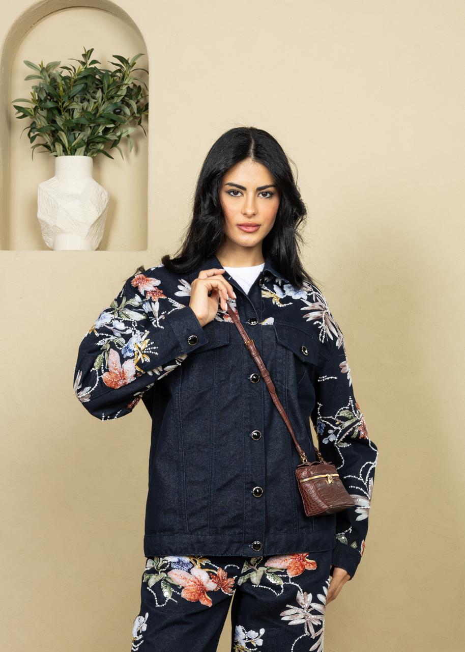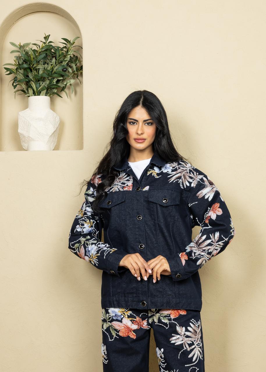 جاكيت جينز عصري مزين بتطريز أنيق وأزرار أمامية متينة. مصنوع من قماش جينز عالي الجودة لراحة تدوم طويلاً، ويضفي لمسة عصرية على إطلالتك اليومية، مثالي للإطلالات الكاجوال والعصرية.