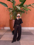 ارتقِ بإطلالتك اليومية مع هذه البنطلون الواسع المصمم بقصّة أنيقة. مصنوع من قماش كريب فاخر يمنحك انسيابية وأناقة في الحركة. يتميز بثنيات أمامية تضيف لمسة راقية، وقصّة مريحة تمنحك مظهراً عصرياً مناسباً للعمل أو الإطلالات اليومية أو التنسيق مع طبقات في جميع المواسم.
