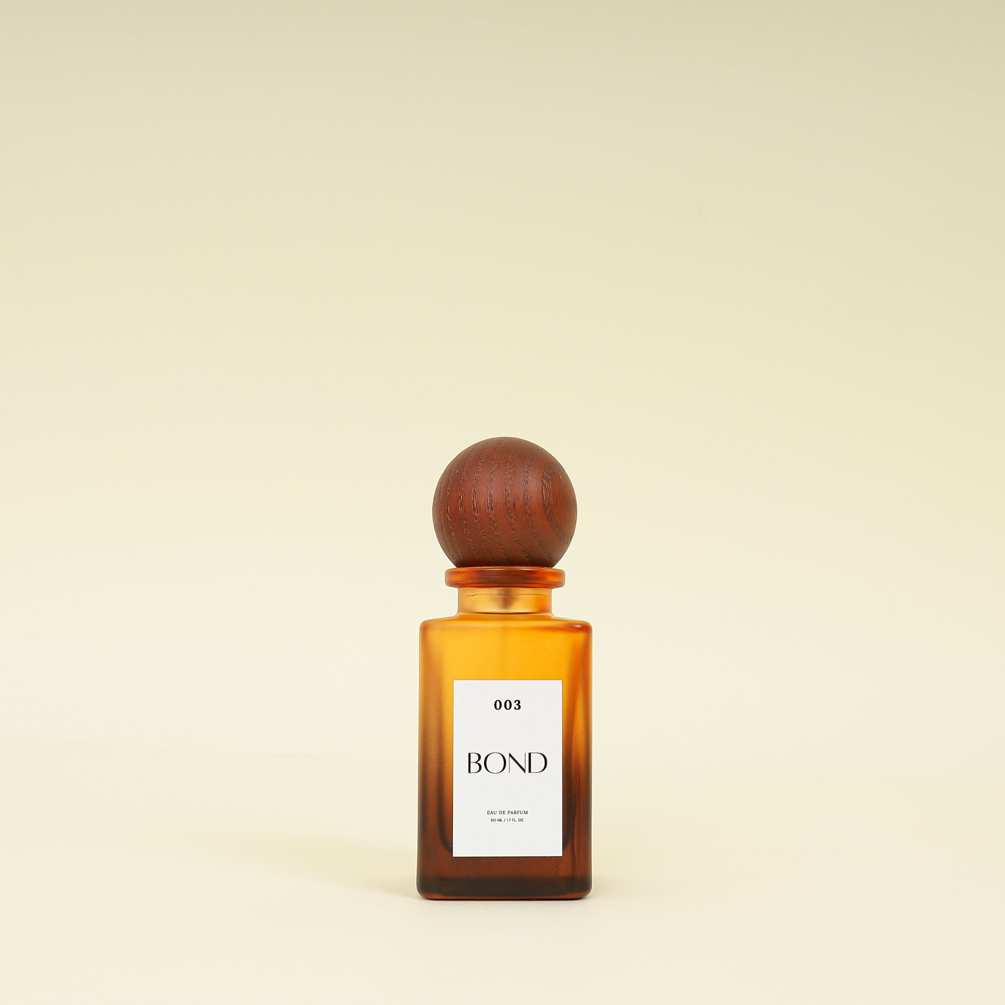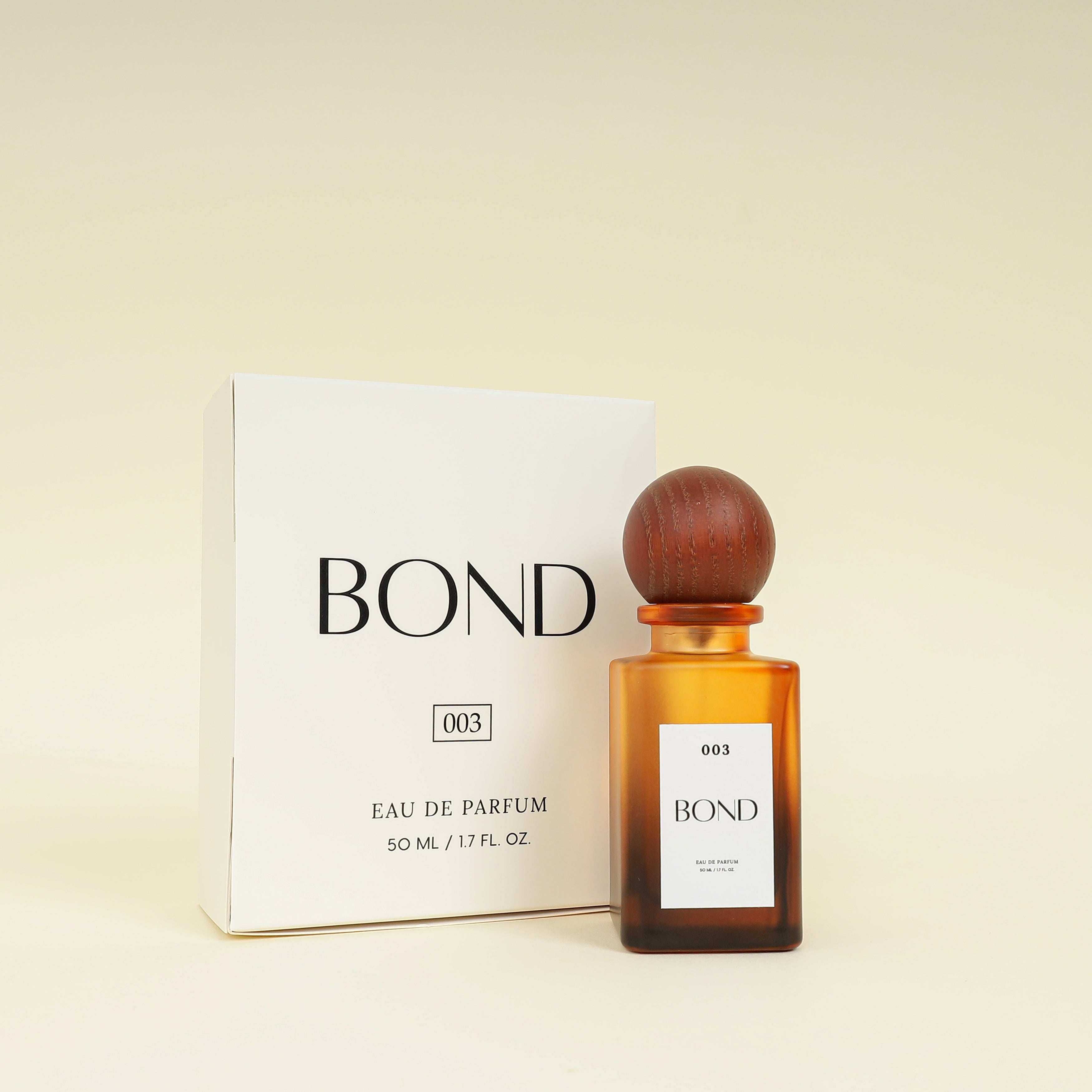 Bond 003 is for those who crave something unexpected. It opens with juicy pear and a spark of pink pepper, softened by delicate orange blossom—fresh, intriguing, and just a little spicy.