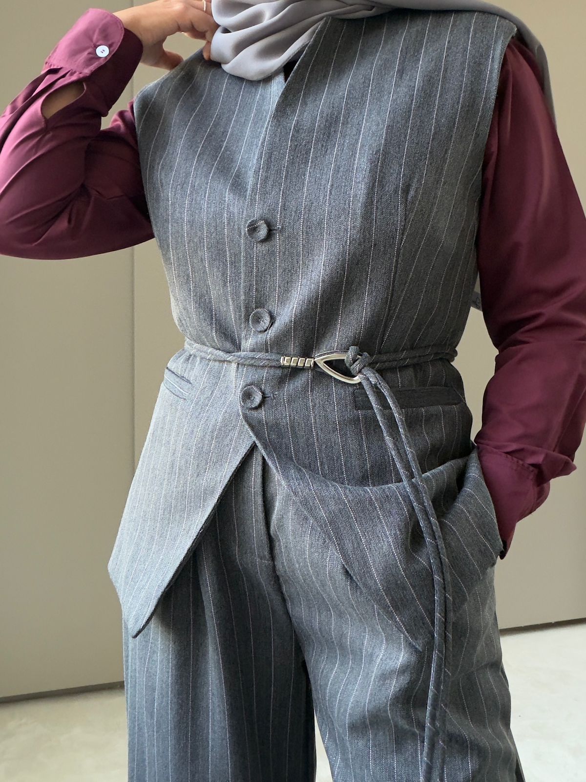 Belted Waistcoat & Wide-Leg Pants Set