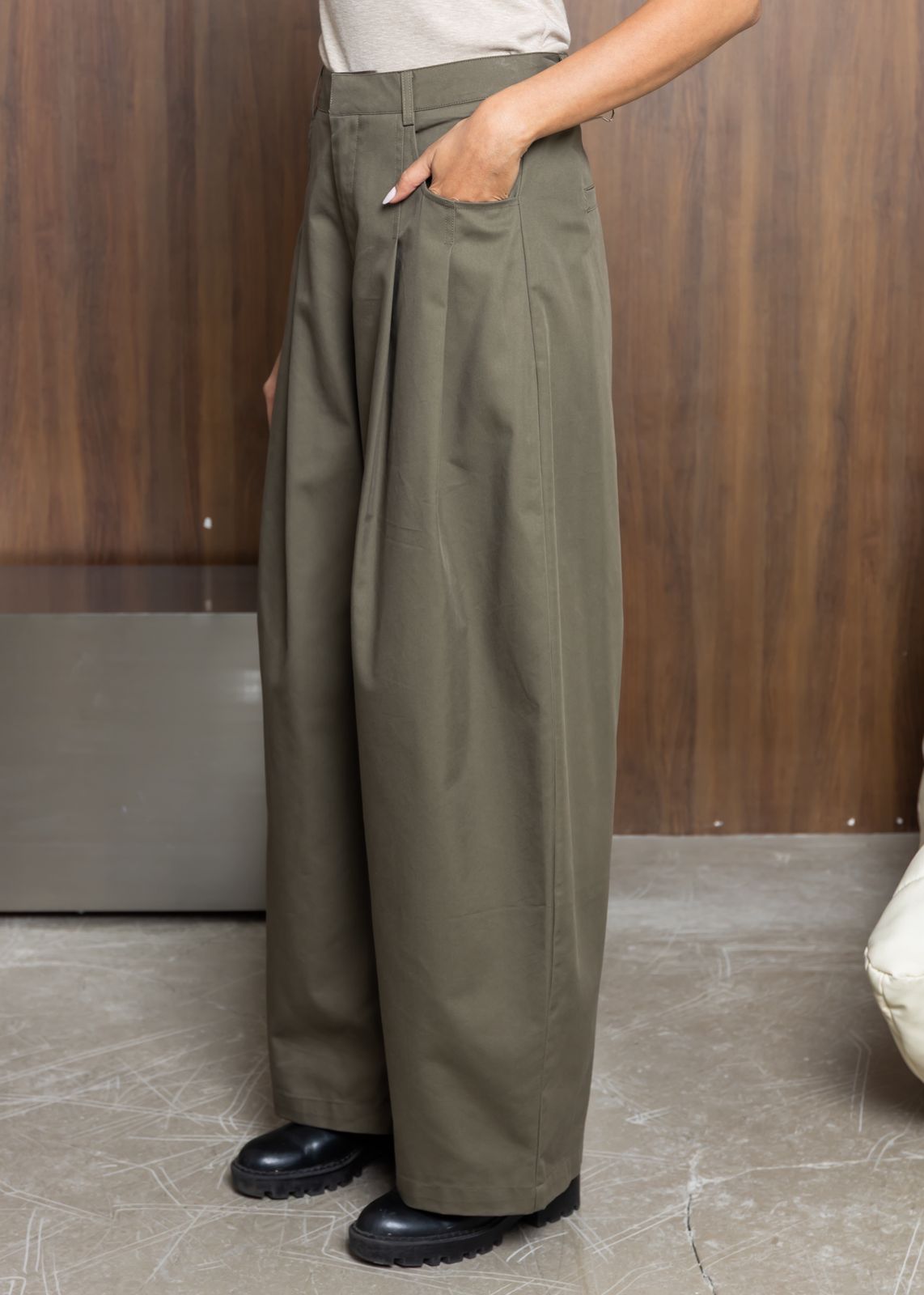 Crafted from a structured yet comfortable fabric, featuring a high waist, soft front pleats, and side pockets for a flattering silhouette. Easy to style from casual daytime looks to refined evenings.
