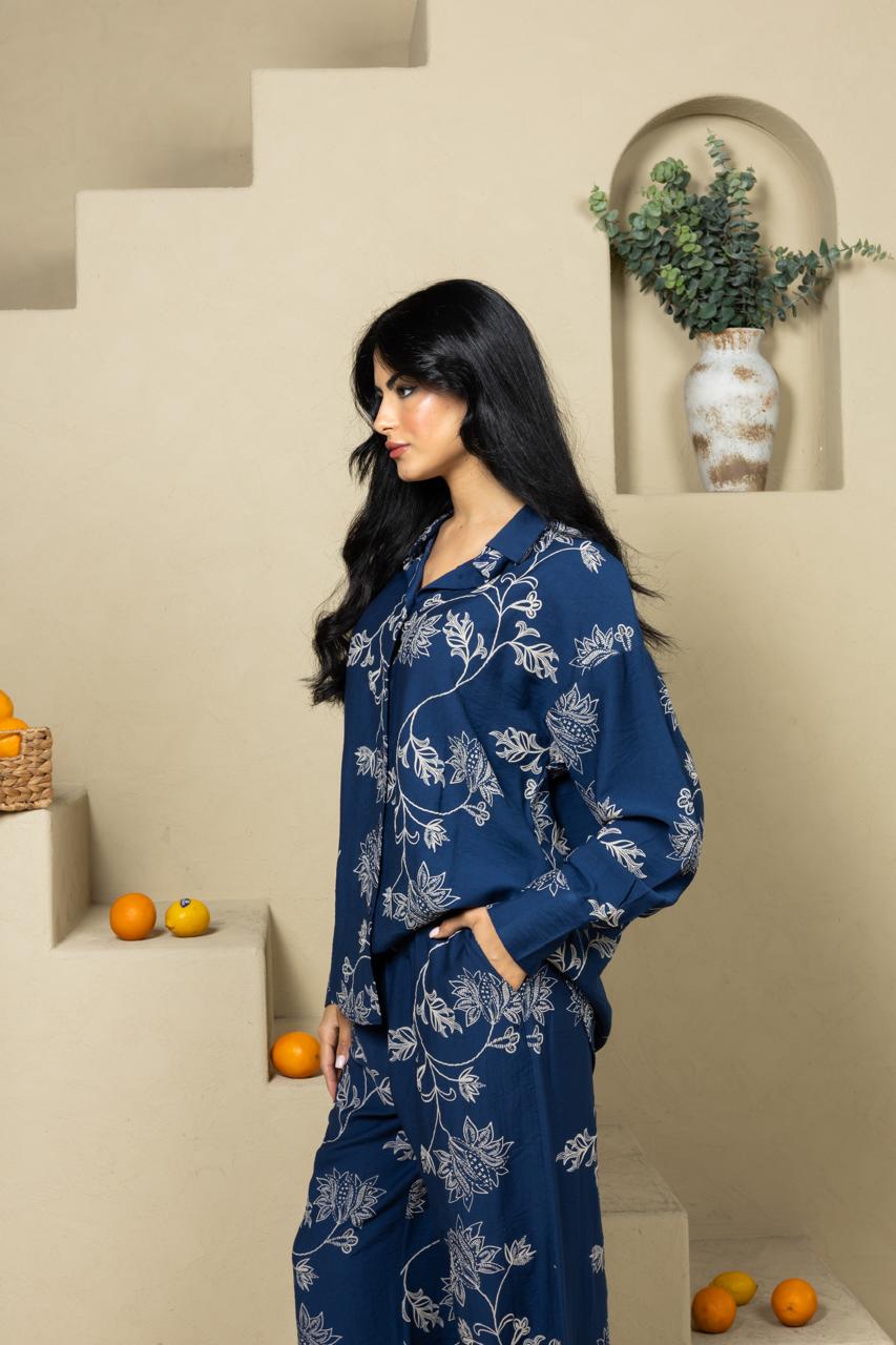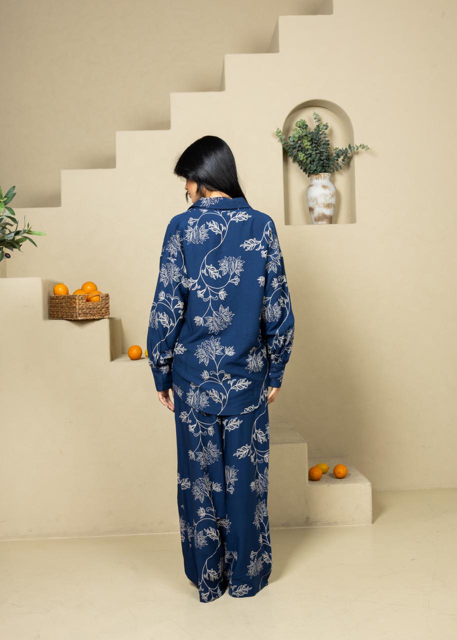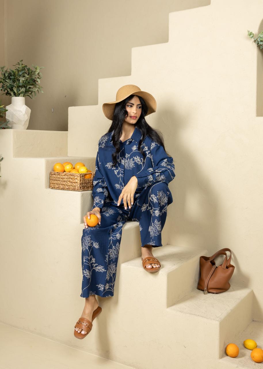 A relaxed two-piece set featuring a 3D printed (Raised Print) cotton shirt and matching pants. Designed with a soft botanical pattern, Botanica offers effortless comfort and an easy, refined everyday look.